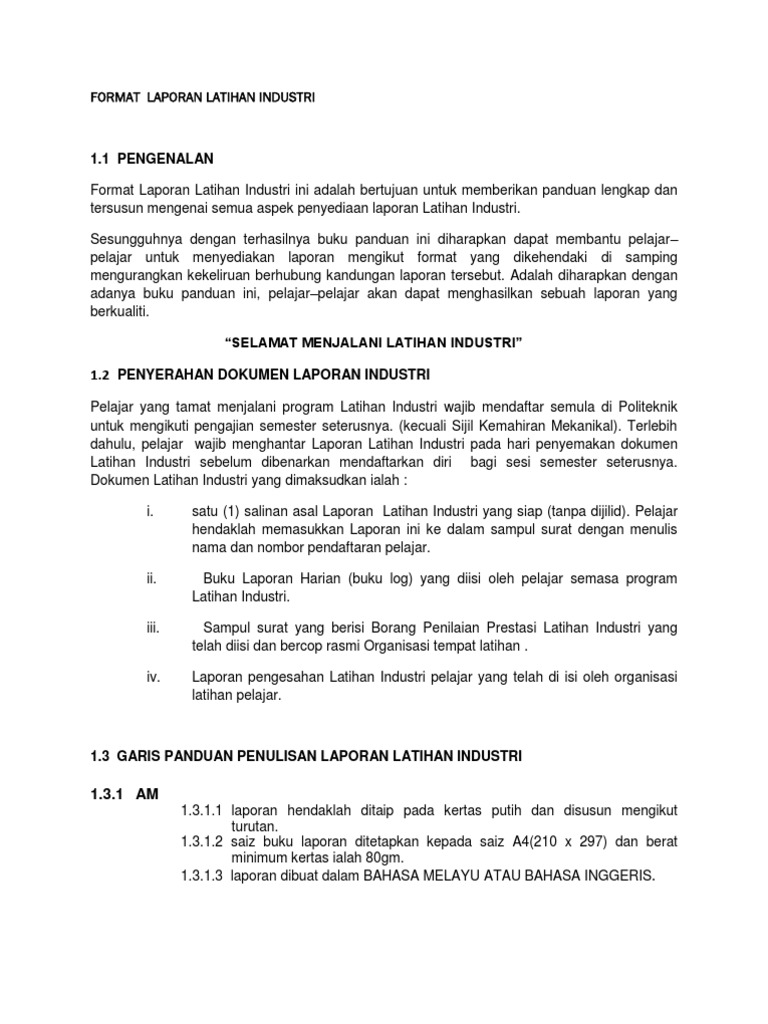 Pdf Panduan Penulisan Laporan Akhir Latihan Industri Unit Perhubungan Dan Latihan Industri Politeknik Nilai Negeri Sembilan Fkry Jamaluddin Academia Edu
